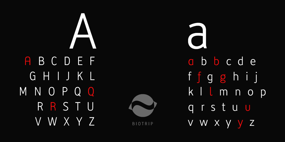 Biotrip Sans nace del trazo vivo, del impulso que une la mente al movimiento. Su estructura parte de la geometría, sí, pero cada forma fue suavizada por un pulso orgánico que hace que el ojo humano confíe, lea, respire. Las formas abiertas y neutrales y el ritmo equilibrado la convierten en una fuente cálida, versátil y naturalmente legible, incluso en los tamaños más pequeños —porque los buenos textos no deberían gritar para ser entendidos.