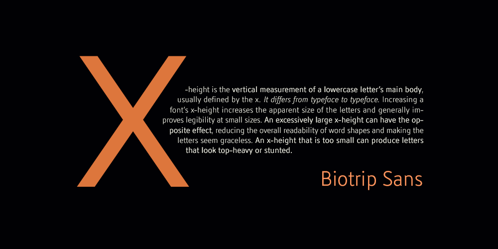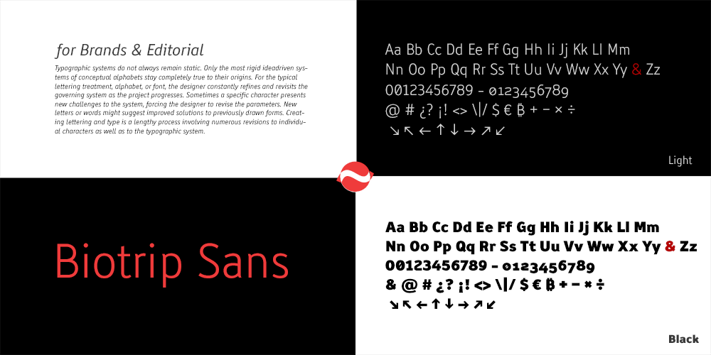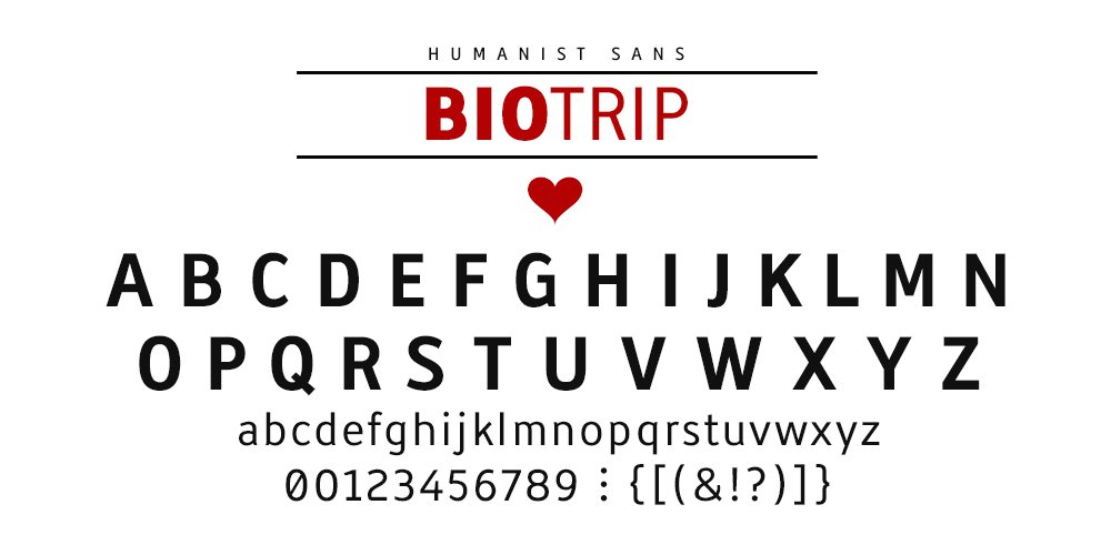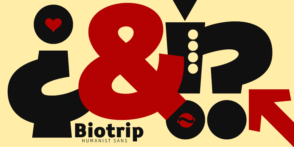 Biotrip Sans es una familia de fuentes multipropósito. Diseñada para moverse con soltura entre lo editorial, lo corporativo y lo experimental. Brilla en textos, encabezados, identidades visuales, carteles, empaques o como tipografía corporativa. Es una tipografía que puede susurrar o afirmar, pero nunca se queda muda. Biotrip Sans no busca parecer “perfecta”; busca parecer viva. No quiere ser otra sans más en tu carpeta de fuentes, sino un recordatorio de que incluso en la tipografía, la humanidad puede filtrarse entre las líneas rectas.